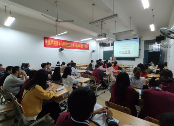 为坚持不懈地用马克思主义中国化的最新成果武装青年,不断提高大学生骨干的思想政治素养和政策理论水平,2019年11月17日晚,传媒学院第一期青年马克思主义培训班理论宣讲第二讲在1205教室举行,教育与音乐学院党总支书记周杰老师为主讲人,会议由传媒学院团总支书记周俊巧主持,传媒学院青年马克思主义培训班全体学员参加。