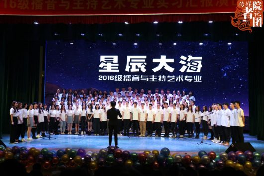 为完成专业实习,汇报毕业成果。12月10日晚七点,传媒学院2016级播音与主持艺术专业在我校弘善讲堂举办了毕业晚会。16级播音与主持艺术专业的131名学生参加了本次晚会的演出,传媒学院首席教授朱剑飞、院长王朝元、党总支书记孙俊以及传媒学院各专业的教师代表到场观看。
