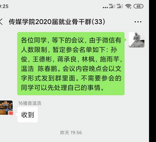 为更好地做好2020届毕业生就业工作,三月十四日晚八时许,传媒学院召开了2020届毕业生就业工作网络视频会议。会议由党总支书记孙俊主持,传媒学院毕业班辅导员,毕业班学生骨干参加了会议。孙俊书记首先传达了自治区和学校就业工作会议精神,强调了抗疫不停学、抗疫不误就业的指导思想。宅在家里防疫情,是当前头等大事,但是就业工作也是关系到国计民生的重要工作,希望同学在抗疫的同时,要提前谋划,规划好自己的求职思路。针对当前非常时期,同学们外出求职可能面临诸多安全隐患的实际:一方面强调了疫情就是命令,防控就是责任,人人要守则,个个要重视;另一方面提醒大家尽快规划自己的就业方向,谋划好自己的就业岗位,鼓励同学们转变思路,充分利用网络进行求职活动。同时鼓励同学拓宽自己的就业思路;鼓励大家去东北三省等边远地区找工作;到优秀私营企业去工作;鼓励大家到部队去保卫国防,无上光荣。