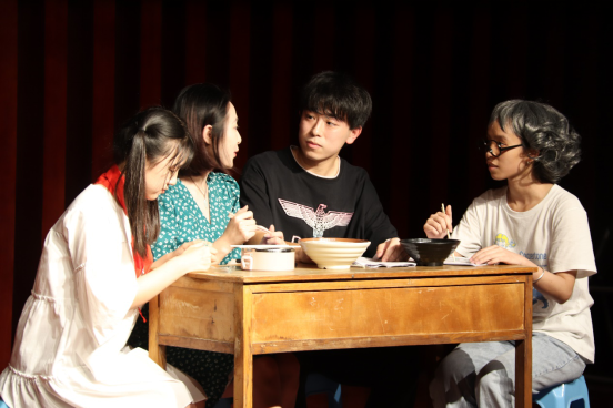 活动伊始,主持人介绍活动流程、到场嘉宾及参赛作品。本次活动共有九个作品,这些作品的题材都契合了当下的社会热点。作品展示运用了情景剧的方式,《宵夜》呼吁人们关爱老人,珍惜与亲人相处的时光;《走后门》讽刺了社会官场上的腐败风气;《请战书》生动表现了疫情当下医护人员不惧危险,奋勇拼搏的精神;《等你归来》表达出对于医护人员的关爱,希望所有“战士”都能平安归来。舞台上的表演者全情投入,使劲浑身解数表现节目主题,台下的观众看到动情处也发出阵阵欢声笑语。