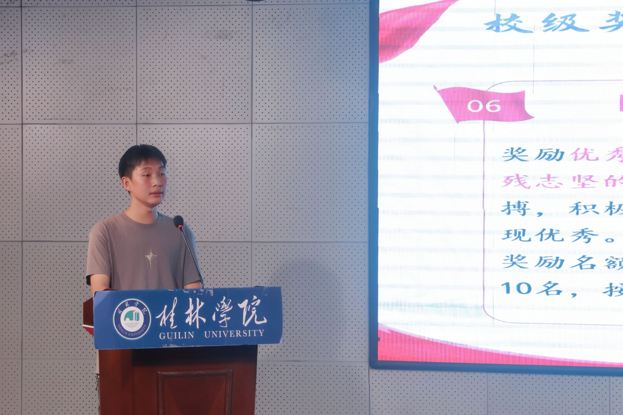 宣讲过程中,高宇飞同学围绕高校资助政策概述、生源地信用助学贷款政策、学费补偿与贷款代偿政策以及桂林学院学生资助政策等四大核心内容展开讲解,帮助新生全面理解和掌握相关资助政策。在“高校资助政策简介”部分,他重点介绍了“多位一体奖助体系”,系统梳理了奖学金、助学金、勤工助学、助学贷款和困难补助等多元资助渠道,详细说明了各类资助项目的申请条件与覆盖范围,使新生能够准确把握政策内容。高宇飞结合学校实际情况,具体介绍了“桂林学院学生资助政策”,内容涵盖校级特色助学金、临时困难补助、勤工助学岗位设置等方面,并分享了校内资助申请中常见的问题及解决方法。现场还设置了答疑环节,及时回应新生关切,有效消除了同学们对相关政策的疑惑。