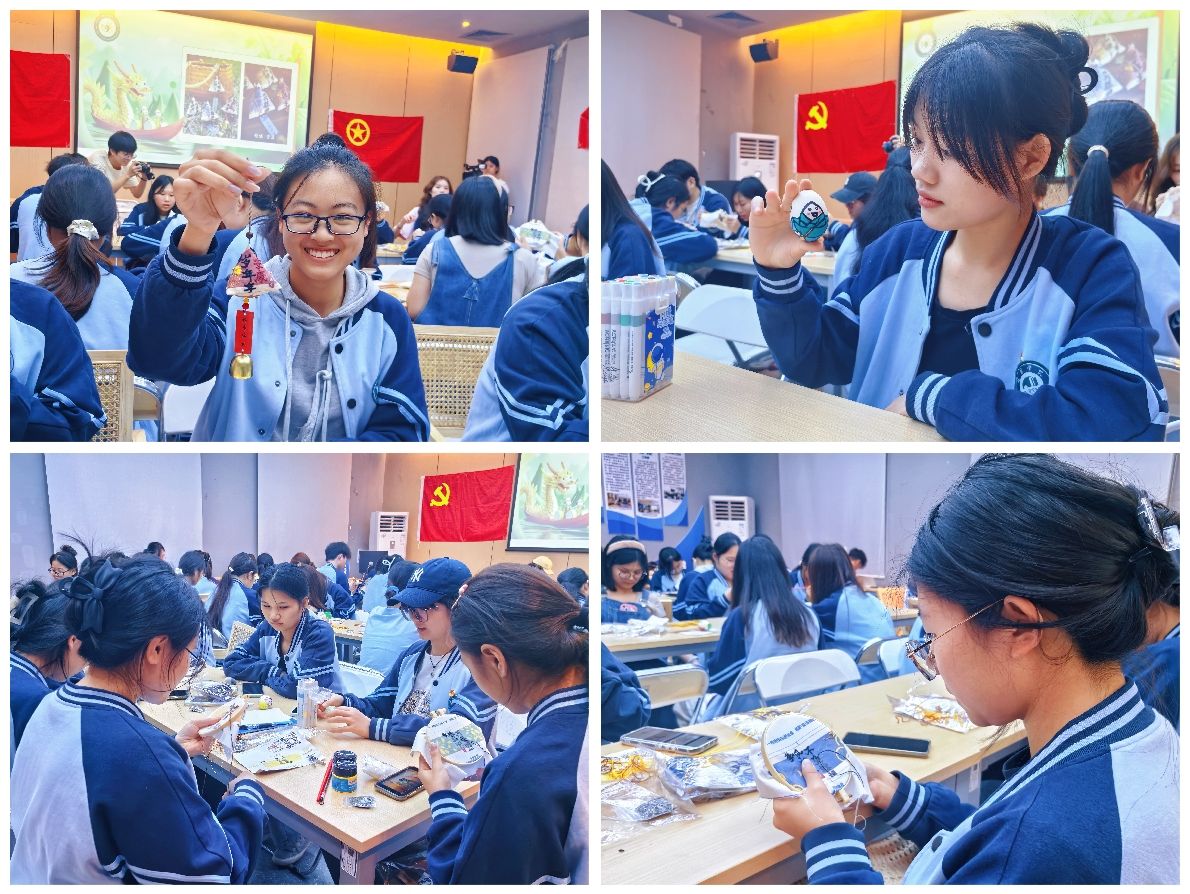 在介绍端午节在广西地区的生动实践时,她指出,广西作为民族团结示范区,各民族在长期历史发展中交融共生,形成了和谐的民族关系。龙舟竞渡、包粽子、祈愿等端午习俗,不仅是文化传承的载体,也是民族团结实践的生动写照。活动最后,主讲人组织学员们参与制作香囊、系五彩绳、彩绘鸡蛋、制作徽章等手工实践,希望大家在亲身体验中增强对中华优秀传统文化的认同感和归属感,进一步感受文化符号的情感魅力。