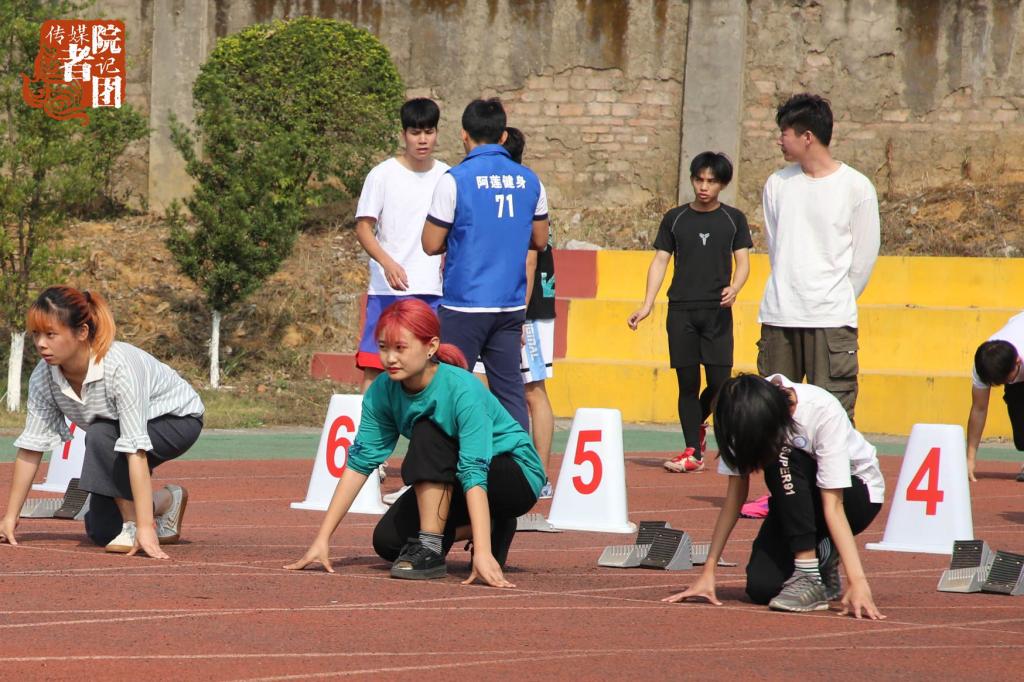 传媒学院运动员2018级播音与主持艺术专业曹馨元(右二)等待起跑