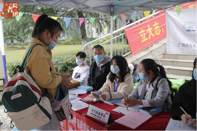 新生在传媒学院大本营办理保险相关事宜,工作人员耐心的为其答疑解惑