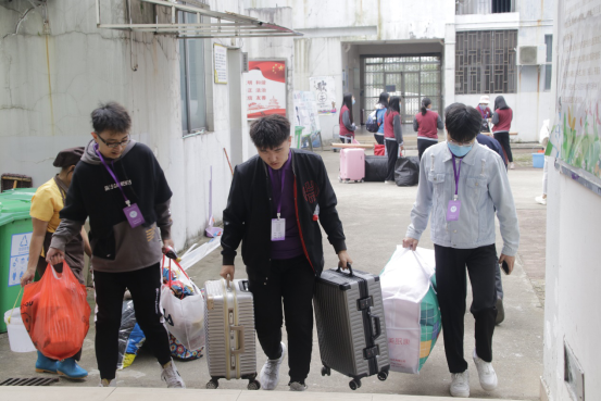 在新生完成报道工作后,我院志愿者们积极帮助新生搬运行李去宿舍。作为学长学姐,帮助学弟们即使感到疲倦,但看到他们的笑脸,听到他们说一声谢谢,依旧感到能量无限,特别开心。