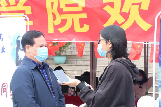 传媒学院院长王朝元在接受传媒学院记者团记者的采访。