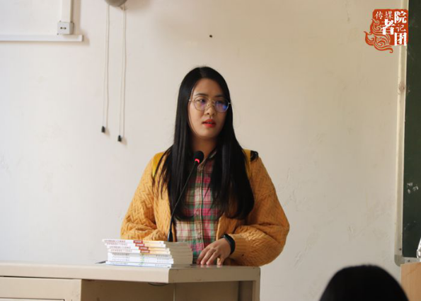 新闻传播类专业班主任陈姮在给新生们讲解大一课程内容