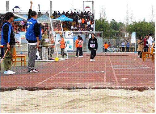 随着裁判一声令下,手中的旗帜一落下,她深吸一口气,“唰”的一下冲出助跑道,只见她一次单足跳、一次跨步跳,仰身一跃,“啪”的一下落到沙坑中。当她落下时,裁判举起白旗,成绩也被迅速的记录下来—7.45米。在起身走出沙坑时,她也露出了微笑。最终成绩出来后,虽然与决赛失之交臂,但施蕴州本人觉得对自己来说已经是一次很大的进步了。