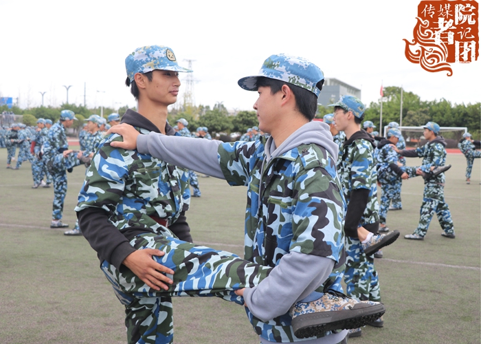 此次军训,传媒学院2021级新生主要集中在20连队、军体拳以及女子匕首操连队。新生们经过前期的军训,已经熟悉了基本的队列动作、停止间转法和唱军歌等军训项目,大家也从初入校园的稚嫩变得更加有毅力。站军姿、踢正步、走队列,同学们一遍又一遍练着更加标准的动作;尽管寒风瑟瑟,但同学们依然热情不减,全都精神抖擞的参与到了训练当中。眼神里闪烁着少年志气高、年少不服输的精神,展现着传媒学子的朝气蓬勃。