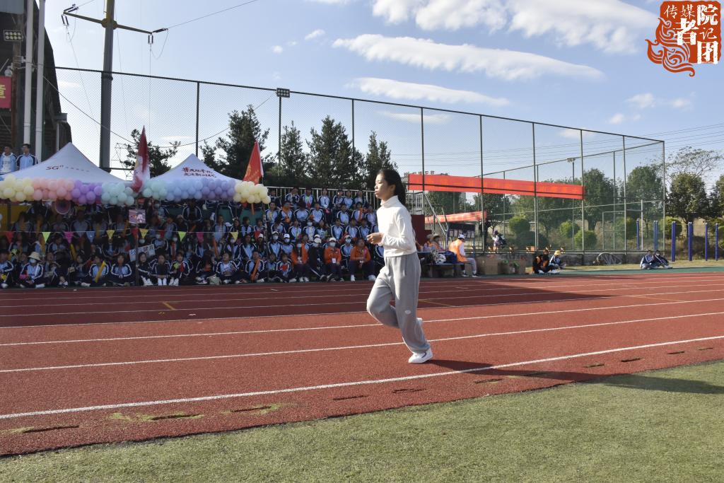 金秋迎盛会,健儿展英姿。11月11日下午,我校第十九届田径运动会女子学生甲组1500米决赛如期举行。传媒学院2021级新闻传播学类专业的陈奕晗、卓艳玲、吴宇鑫三名同学代表传媒学院参加此次比赛。