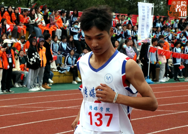 11月12日下午,男子学生3000米决赛于田径场正式开始,传媒学院2021级新闻传播学类的学生张家铭代表传媒学院参加了本次比赛。