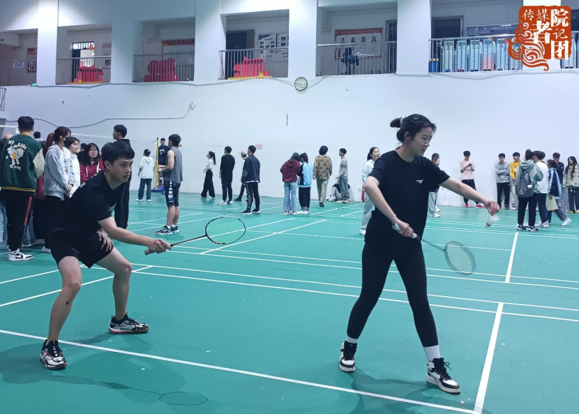11月29日,传媒学院第一届“传媒杯”羽毛球比赛在体育馆场内准时拉开帷幕。本次比赛分为三个场地,分别是19级播音与主持艺术专业队伍对战19级广播电视编导专业队伍、20级新闻传播学类队伍对战20级播音与主持艺术专业队伍、21级播音与主持艺术专业队伍对战21级新闻传播学类队伍。传媒学院团总支学生会书记蒋承良、传媒学院政治辅导员周俊巧也与学生一同加入此次比赛。