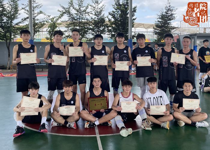 传媒学院获得2022年非专业学院篮球比赛冠军合影