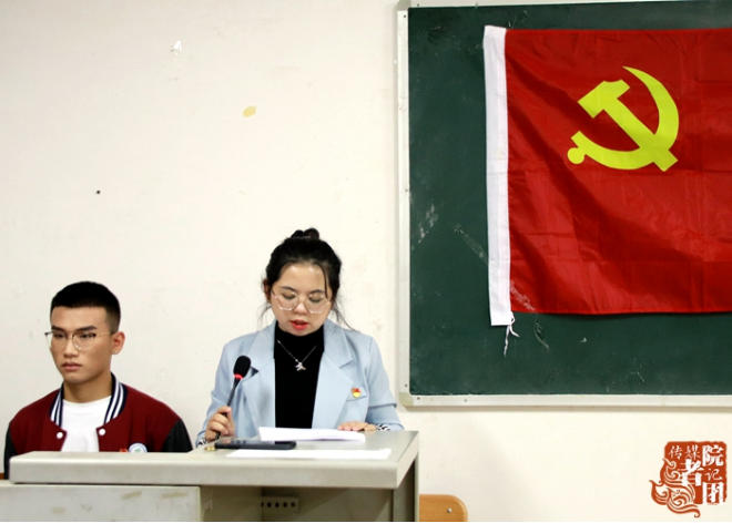 播音与主持艺术学生党支部书记曹依婷主持会议