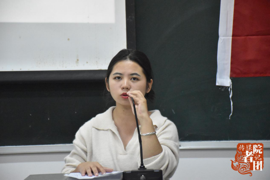 传媒学院播音主持艺术学生党支部书记曹依婷进行大会发言