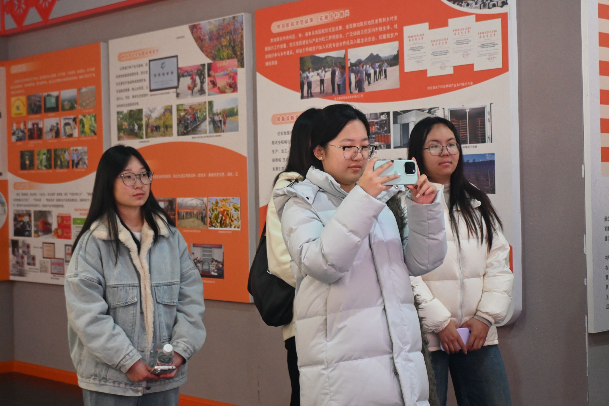 月柿是恭城的重要经济产业,同时也是莲花镇乡村振兴的重要载体。研学师生一行参观了恭城月柿博物馆,从选培、种植、加工、旅游、数字经济等诸多方面了解了红岩村乡村振兴的发展密码。通过实地走访,沉浸式体验新农村建设的生态美、生产富、生活甜,人民对美好生活向往的生动写实。作为文化与传媒专业师生,师生立足专业特色,以镜头定格红岩村的生态美景与发展新貌,用笔尖记录乡村振兴的生动实践,围绕“红色文化传播”“乡村文旅融合”等主题展开研讨。师生们纷纷表示,此次研学将红色精神洗礼与专业实践结合,既深化了对初心使命的理解,又探索了文化赋能乡村振兴的路径。
