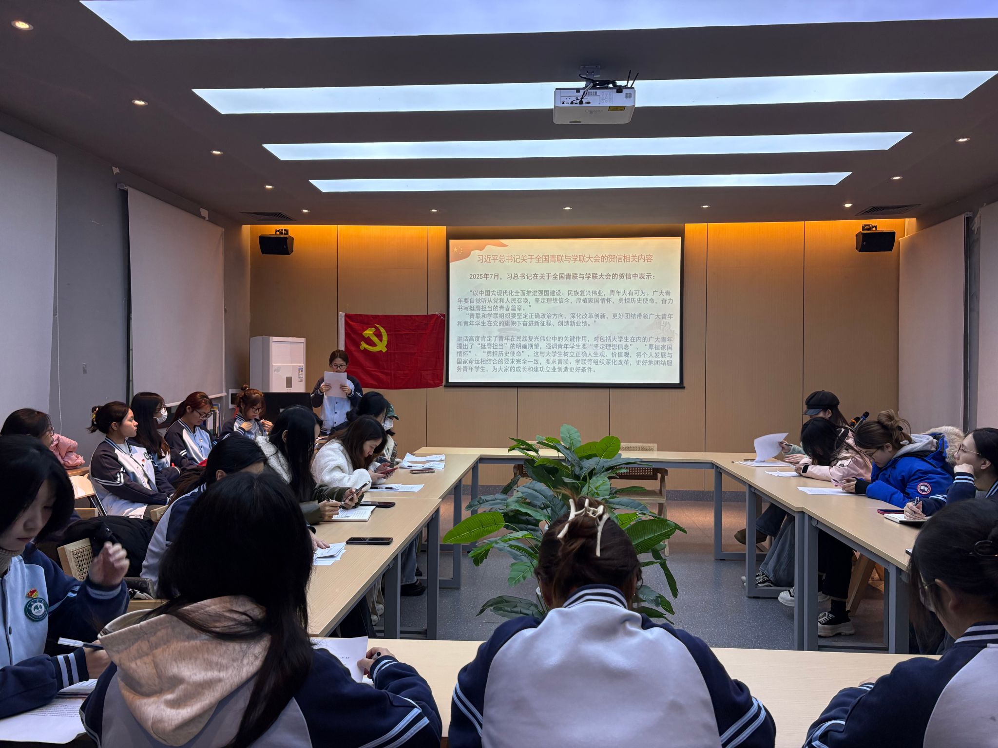 会议伊始,全体人员起立奏唱《国际歌》。随后,大家集体学习习近平总书记在全国青联与学联大会上的贺信内容,深刻领会习近平总书记对青年“坚定理想信念、厚植家国情怀、勇担历史使命”的殷切期望,与会党员交流学习心得,凝聚思想共识。