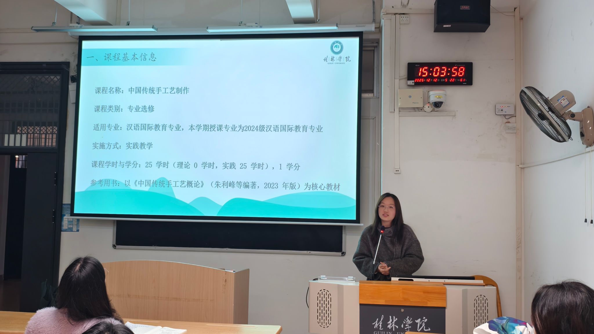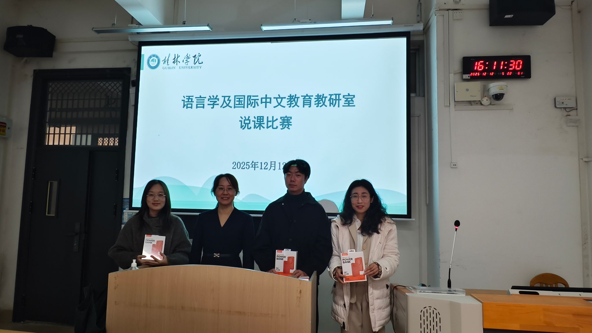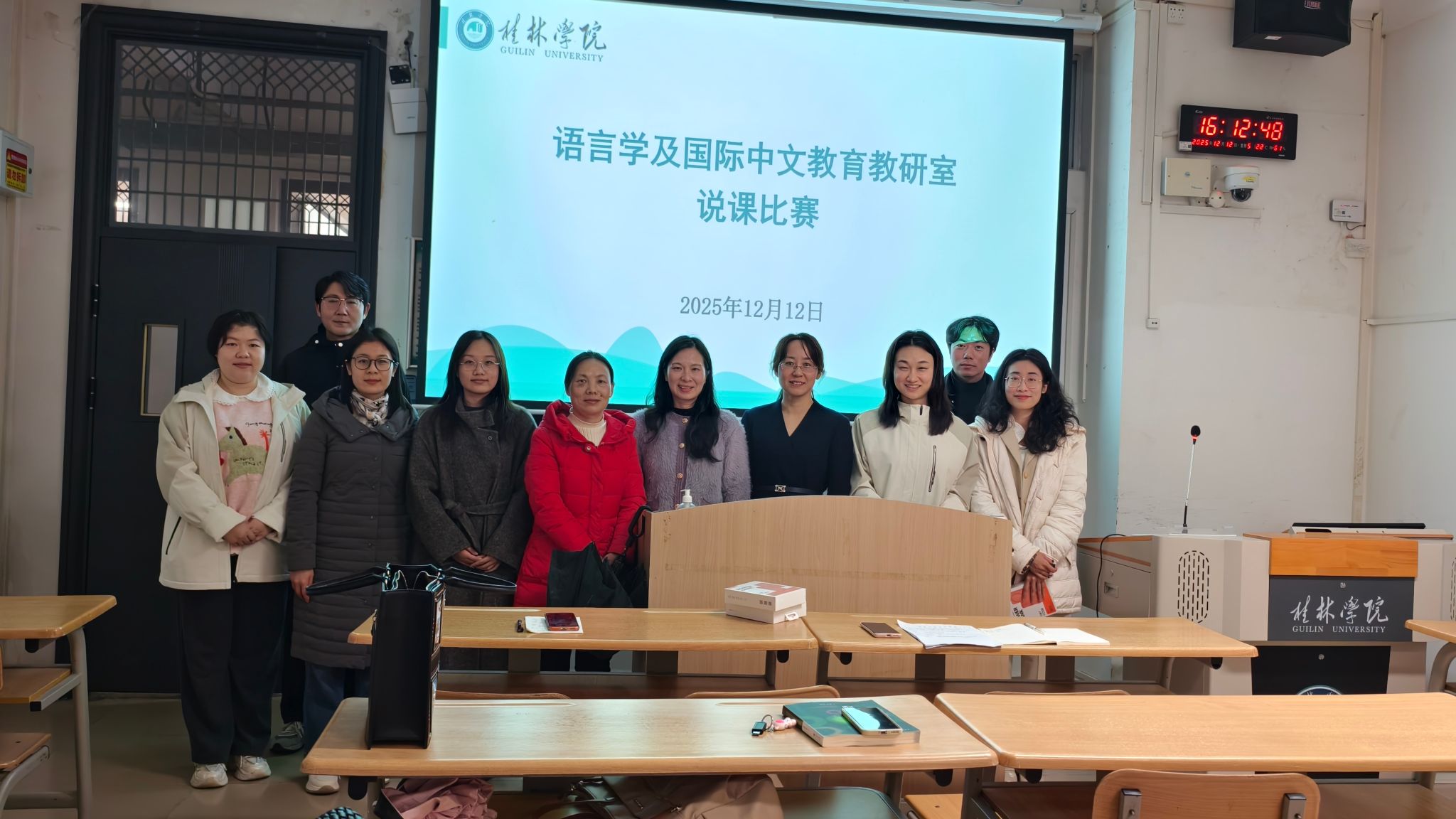 为促进教师专业发展,提升课堂教学质量与教研水平,营造积极钻研、互学共进的教学氛围,桂林学院文化与传媒学院语言学及国际中文教育教研室于12月12日成功举办了教师说课比赛活动。本次活动紧扣“学生中心、产出导向、持续改进”的教育理念,旨在帮助各专任教师相互交流教学方法、锤炼教学基本功。