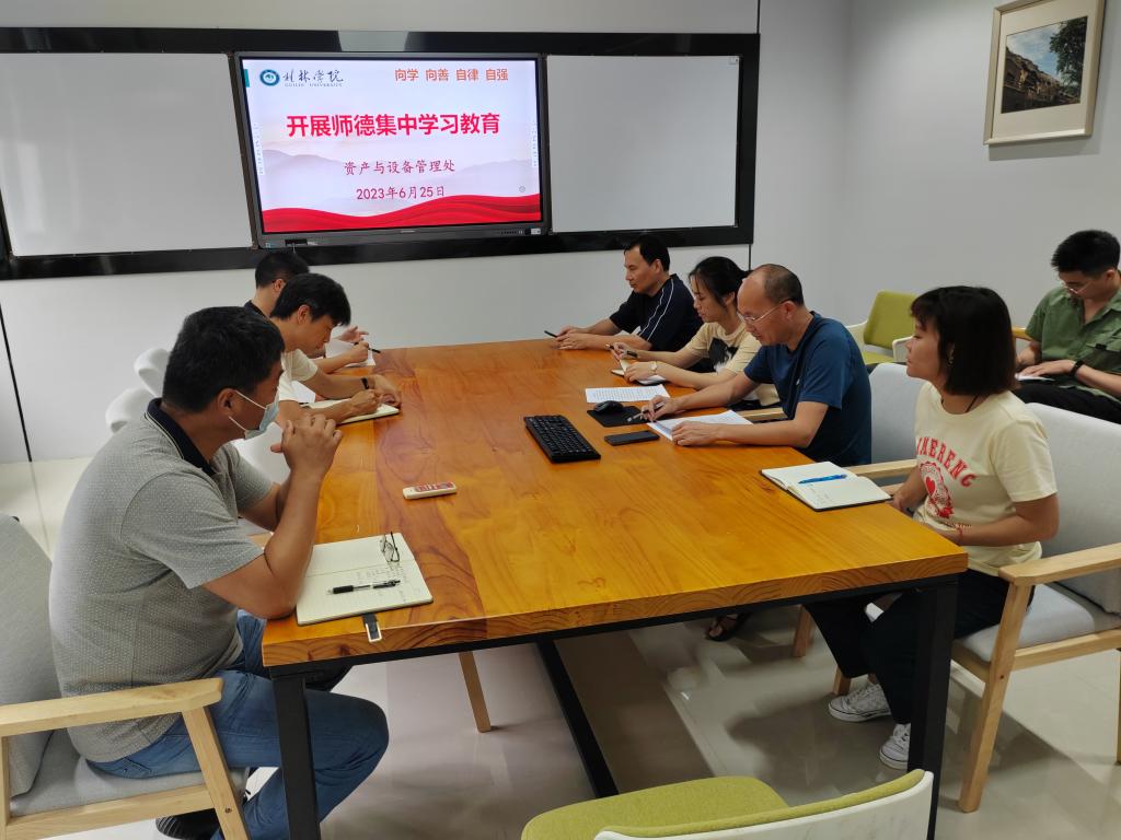 为深入贯彻落实《自治区教育厅转发关于在教育系统开展师德集中学习教育的通知》精神,落实立德树人根本任务,进一步加强师德师风建设,规范高校教师履职尽责行为,强化师德学习教育,夯实清正廉洁思想根基,6月25日下午,资产与设备管理处在图书馆三楼会议室开展师德集中学习教育活动,全体教职工参加会议,支部书记李殷峰同志主持大会。