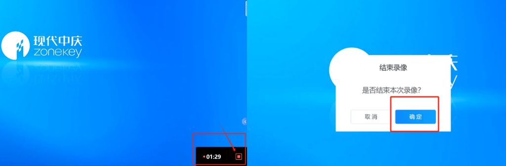 3.2需要停止/结束录制时,在屏幕右下角单击【停止】按钮并确定。