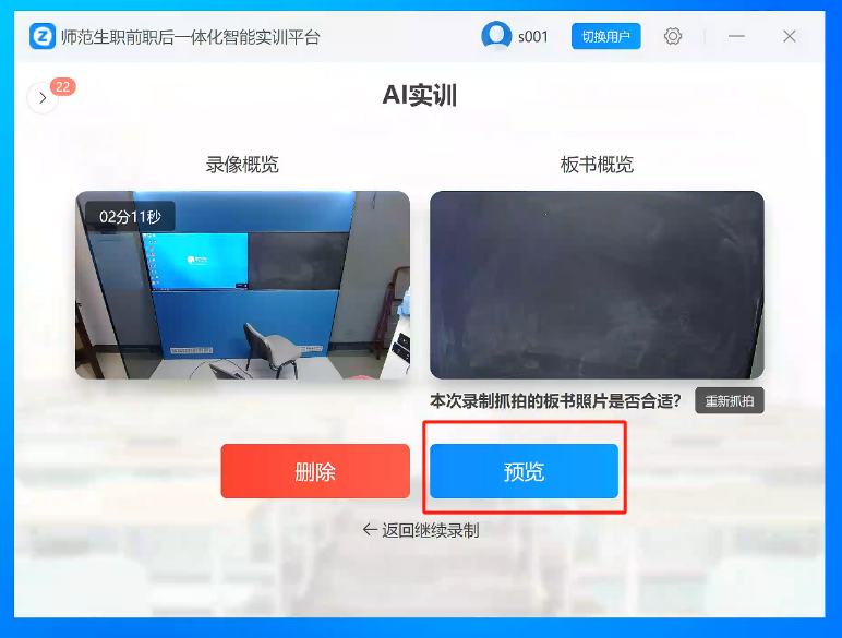 3.3单击【预览】可以查看本次录课视频及AI报告内容。