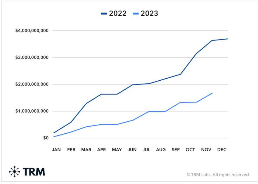与此同时,虽然今年上半年诈骗活动有所减少,但与加密货币相关的特定类型的犯罪却有所增加:勒索软件。事实上,根据 Chainaanalysis,至少在当时,这是今年唯一增长的与加密货币相关的犯罪类型。截至 6 月,犯罪分子勒索了至少 4.49 亿美元,比 2022 年同期增加了 64%,2022 年,随着大型组织改进网络安全和数据备份实践,勒索软件造成的损失下降,他们可以拒绝支付赎金。