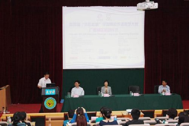 由上海外语教育出版社、广西区教育厅联合主办的第四届“外教社杯”全国高校外语教学大赛广西赛区启动仪式暨“英语课堂的有效教学”研修班于4月26-28日在广西师范学院举行,来自全区30多所本科院校共130名教师代表参加了启动仪式及研修。我院外语系大外教研室的四位教师参加了本次研讨会。