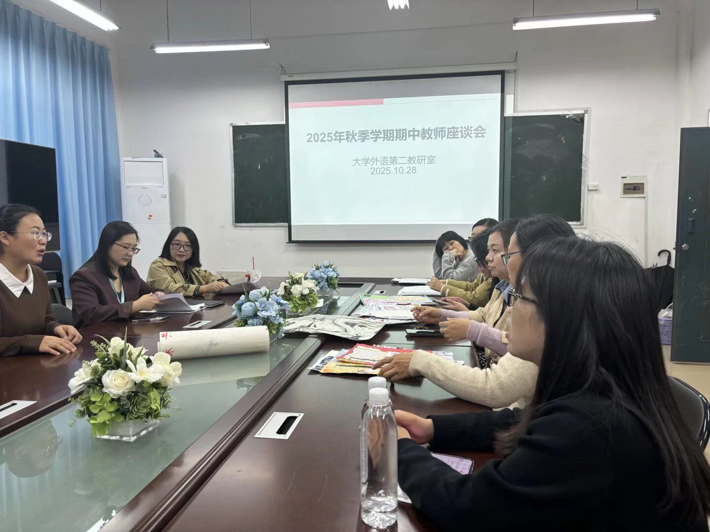 为精准把握教学动态、破解教与学难题、全面提升大学英语教学质量,近日,大学外语第二教研室先后召开教师、学生期中座谈会,分别与教师代表、各学院学生代表深入交流,为教学优化明确方向。