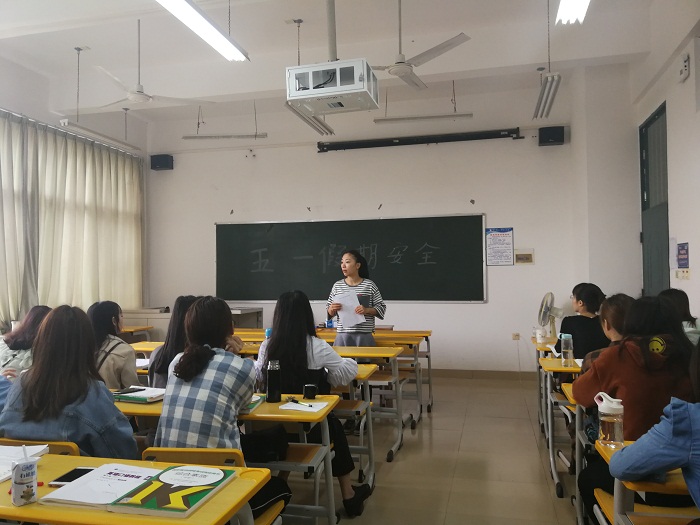 为增强学生的安全防范意识,让同学们能平安度过五一假期,外语系2016级英语类就“五一”假期学生安全教育工作召开了主题班会,会议由外语系辅导员韦微主持 。