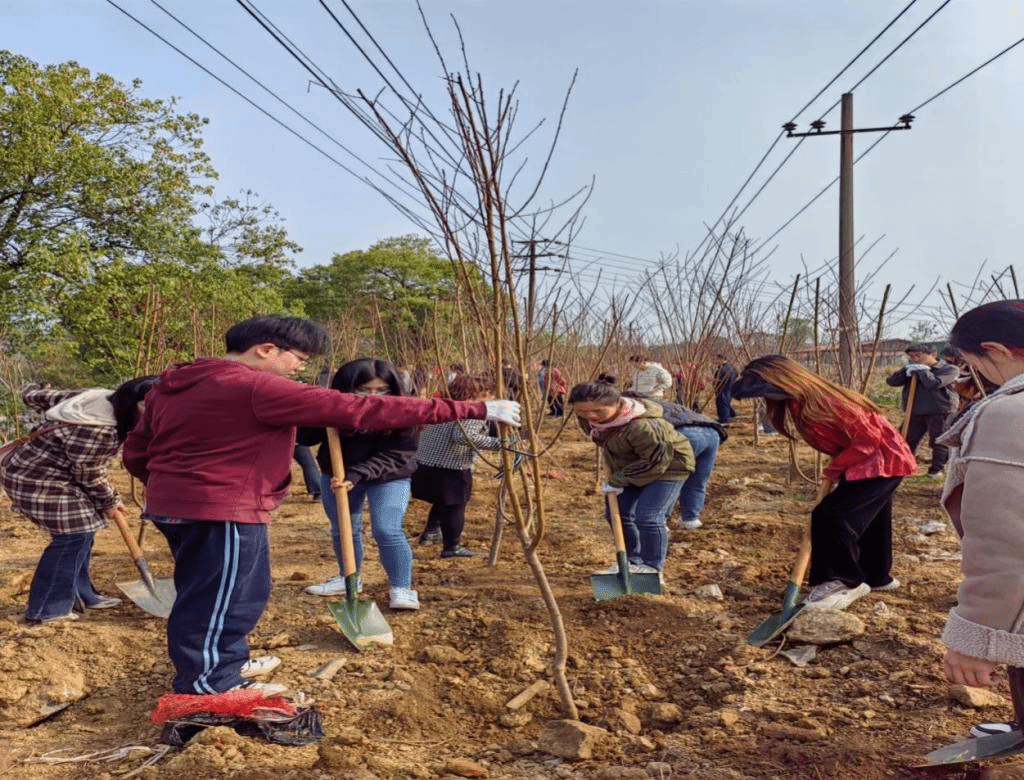 植树现场,热闹非凡。大家分工协作,扛苗、扶苗、铲土、踏实等各环节都认真对待,赋予了小树苗无限希望。大家种得认真,栽得卖力,在灿烂的太阳下挥洒着汗水,整个植树活动呈现出一片热火朝天的劳动景象。