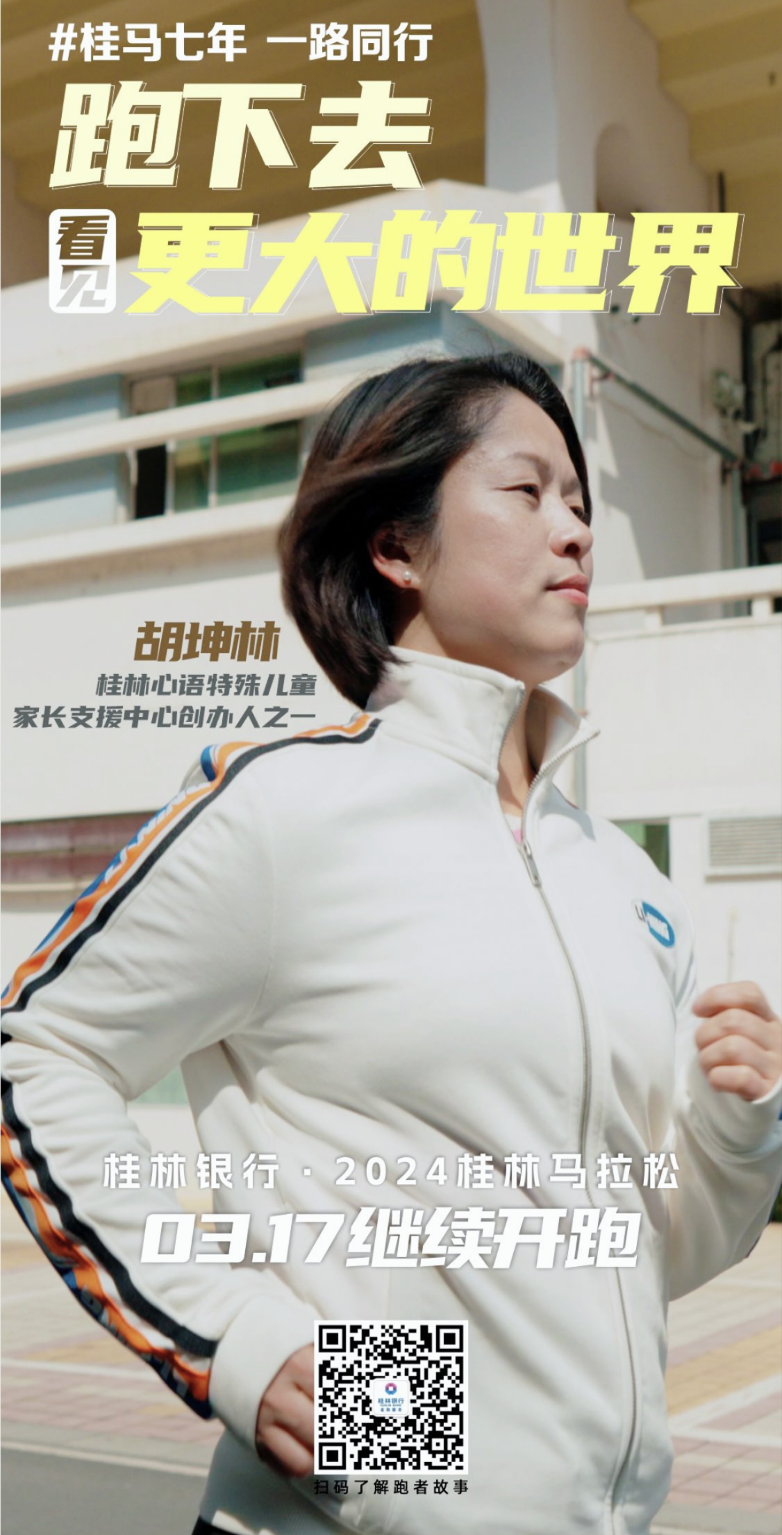 近日,人文学院教师胡坤林荣幸地成为2024年桂林马拉松人物,为桂林马拉松代言,展现了她对公益事业的热心和对体育运动的热爱。胡坤林老师长期在校内外推动公益活动的开展,作为一名党员,她一直以身作则,服务社会,回馈社会。2017年创办的心语特殊家庭支援中心通过分享专业干预知识,举办各种特色文体活动,让中国特殊儿童及其家庭聚在一起互相关怀和鼓励。为他们打开与社会连接的大门,让他们的世界不再孤独。