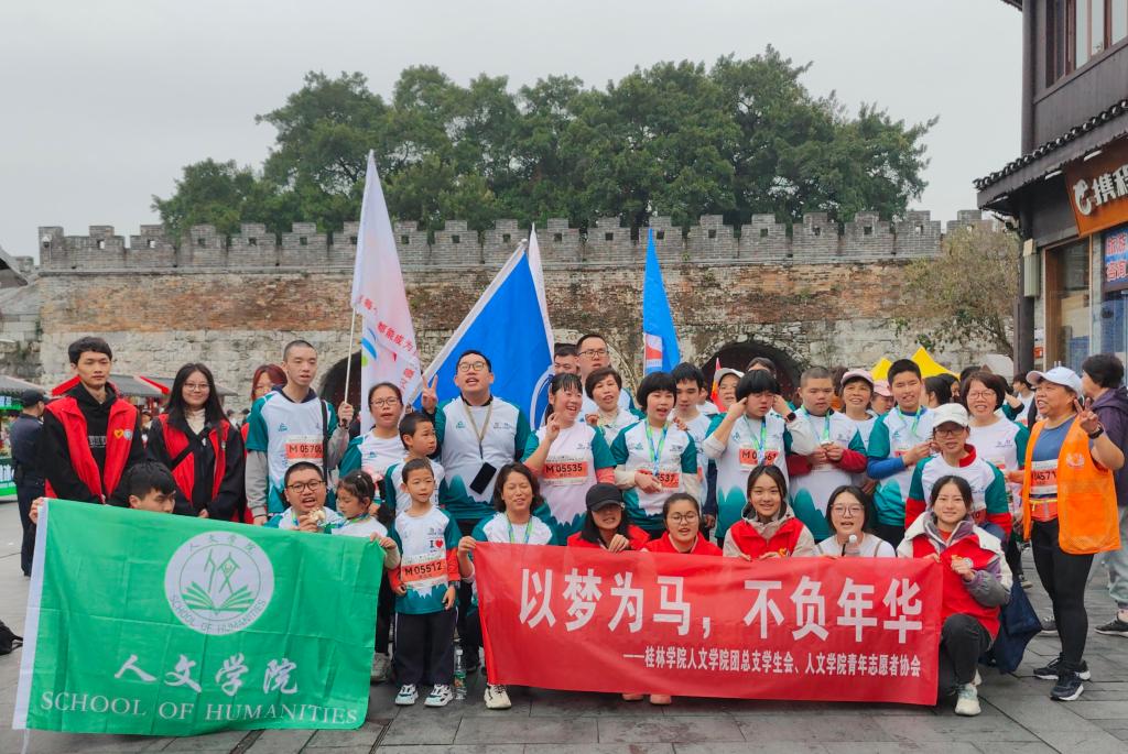 3月17日,桂林银行•2024桂林马拉松赛在桂林市中心广场鸣枪开跑,30000余名国内外选手齐聚于此,共同跑进桂林山水。为积极践行雷锋精神,学习2024年桂林马拉松人物胡坤林老师“用奔跑·传递爱”的公益理念,桂林学院人文学院志愿者师生在今年的马拉松活动中为桂林心语跑团提供志愿服务,助力特殊需求人士——“星星的孩子”顺利完赛。