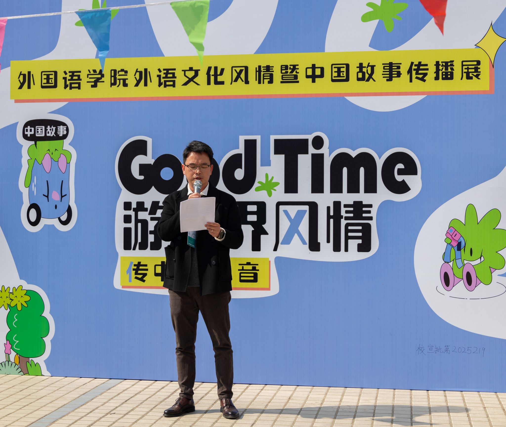 活动伊始,外国语学院党总支书记致辞。他向莅临领导、同仁致以欢迎,向筹备师生表示感谢,指出此次风情展是学院“以语言为桥、促文明互鉴”办学理念的实践,与党的二十届四中全会“提升中华文明传播力影响力”要求高度契合。他引用习近平总书记“讲故事是国际传播的最佳方式”的论述,称现场越南中秋灯笼、泰国水灯节元素与中国春节舞狮、冬至汤圆相映成趣,正是学子用双语诠释传统、融合中外的鲜活体现。他寄语学子,以语言为翼读懂世界、传播中国故事,成长为兼具专业素养与国际格局的外语人才,为文化强国建设注入青春力量。