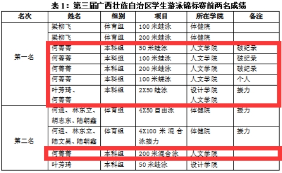 (桂林学院游泳代表团赛况)