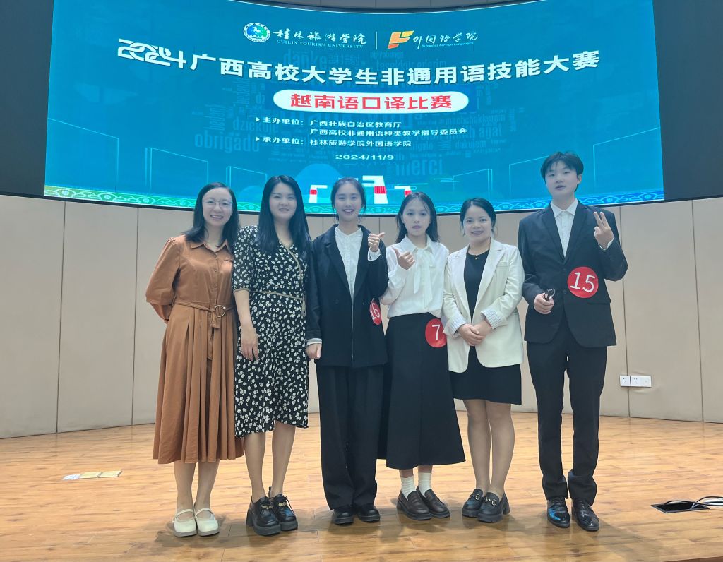 11月9日,由广西教育厅主办、桂林旅游学院承办的“2024广西高校大学生非通用语技能大赛”圆满落幕。此次比赛包含越南语、泰语等多个非通用语种,其中越南语口译比赛吸引了来自广西区内11所高校共33名越南语专业学子参与。我校越南语专业任己林、虞颖茵、黄小玲3名同学在专业教师阳琦兰、郑克晓、梁姗姗的指导下,经过精心准备,最终取得二等奖2项、三等奖1项的优异成绩,实现我校在此项赛事上新的突破,进一步提升了学校的知名度和影响力。