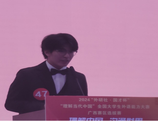 在近期结束的2024年“外研社•国才杯”“理解当代中国”全国大学生外语能力大赛广西赛区决赛中,我校学子捷报频传,共获得金奖2项、银奖1项、铜奖6项,两项金奖入围全国总决赛。在大赛的演讲赛项比赛中,我校黄曦同学从来自全区41所本科高校的182名选手中脱颖而出,以总成绩第二名的优异成绩获得金奖,实现我校在该项比赛成绩上的历史性突破。