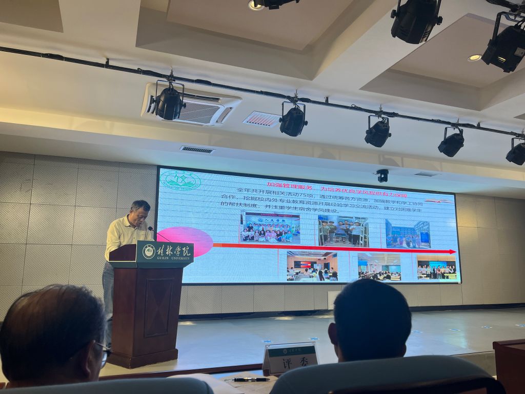4月11日下午,学校在至善讲堂召开2024年学风建设工作总结表彰暨2025年学风建设动员大会,校长吴郭泉对过去一年学校学风建设工作予以充分肯定,同时也指出当前工作存在活动效能未达预期、体制机制需完善、部门协同有待加强等短板,并对《桂林学院关于进一步深化学风建设工作方案》进行解读。副校长蒋毅宣读《关于表彰我校2024年学风建设工作优良学风班级、优良学风宿舍、优良学风标兵的通报》文件。