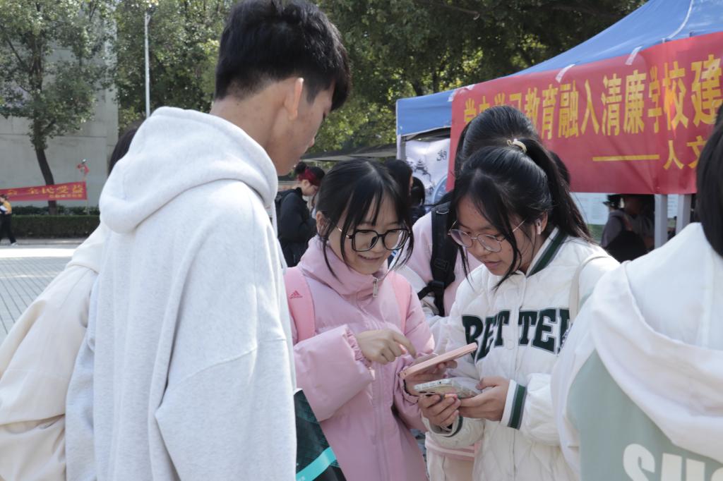 为推动党史学习教育融入清廉学校建设,12月8日中午,人文学院易班学生工作站在乐善广场开展“党史学习教育融入清廉学校建设”知识竞赛。