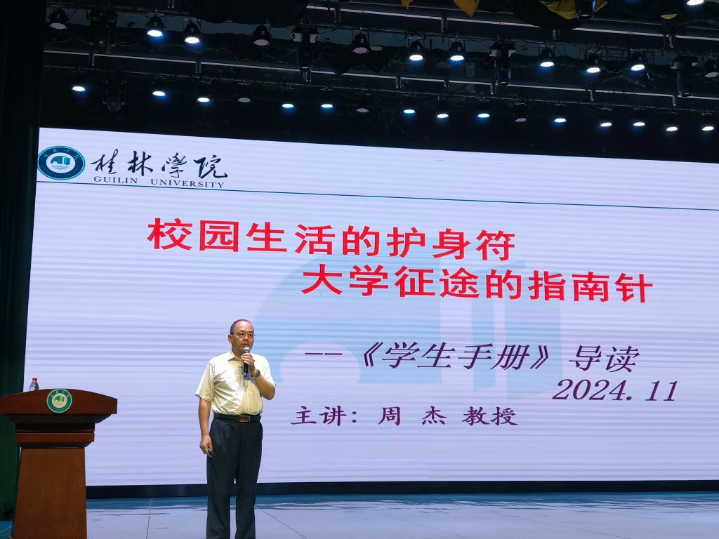 为帮助2024级新生全面了解学校规章制度,增强大学生的规矩意识,11月15日晚,人文学院在弘善讲堂举行《学生手册》专题讲座。本次讲座由教育学院周杰教授主讲,人文学院全体2024级新生参加。