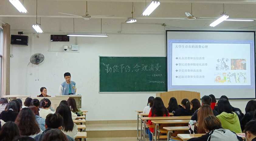 主讲人孙佳欣和林广同学分别从勤俭节约的意义和合理消费两个方向展开。班会中带领同学们加深对勤俭节约的理解,认识勤俭节约是中华民族的优良传统,作为当代大学生,倡导要继承中华传统美德,做到勤俭节约;同时,向同学们介绍了在大学生群体中常见的消费问题,呼吁同学们适度消费、理性消费,反对铺张浪费,形成合理的消费观念。