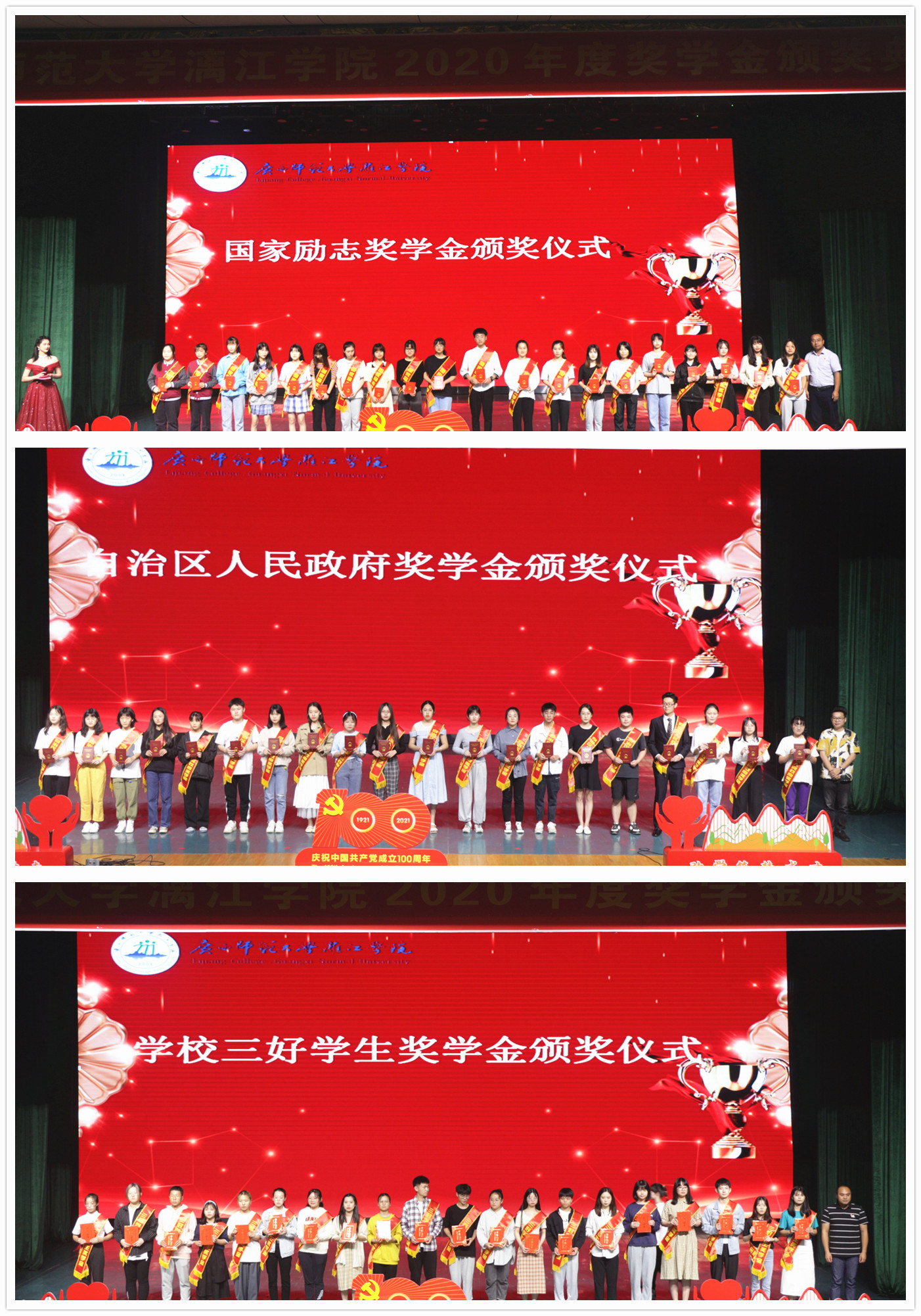 在颁奖典礼上,校大学生艺术团以合唱《唱支山歌给党听》、朗诵《赞美》、独唱《大写的国》的形式表达对党、对祖国、对学校的热爱与感恩之情,体现出“向学、向善、自律、自强”的校训精神,展现漓院学子自强不息、勇于奋斗的良好精神风貌!