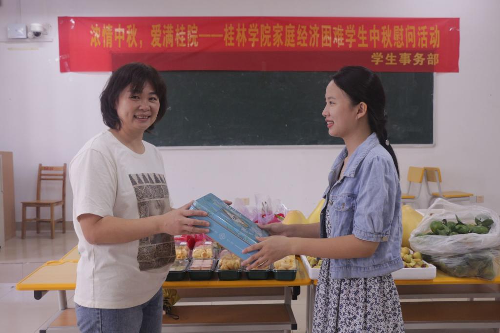 中秋佳节即将来临之际,为了让在校家庭经济困难学生也能感受到佳节浓浓的欢乐氛围以及学校的关怀,学生事务部于9月19日在至善楼1216教室开展了桂林学院家庭经济困难学生中秋慰问活动。学生事务部大学生资助管理中心老师参加本次活动,并为家庭经济困难学生送上中秋祝福。