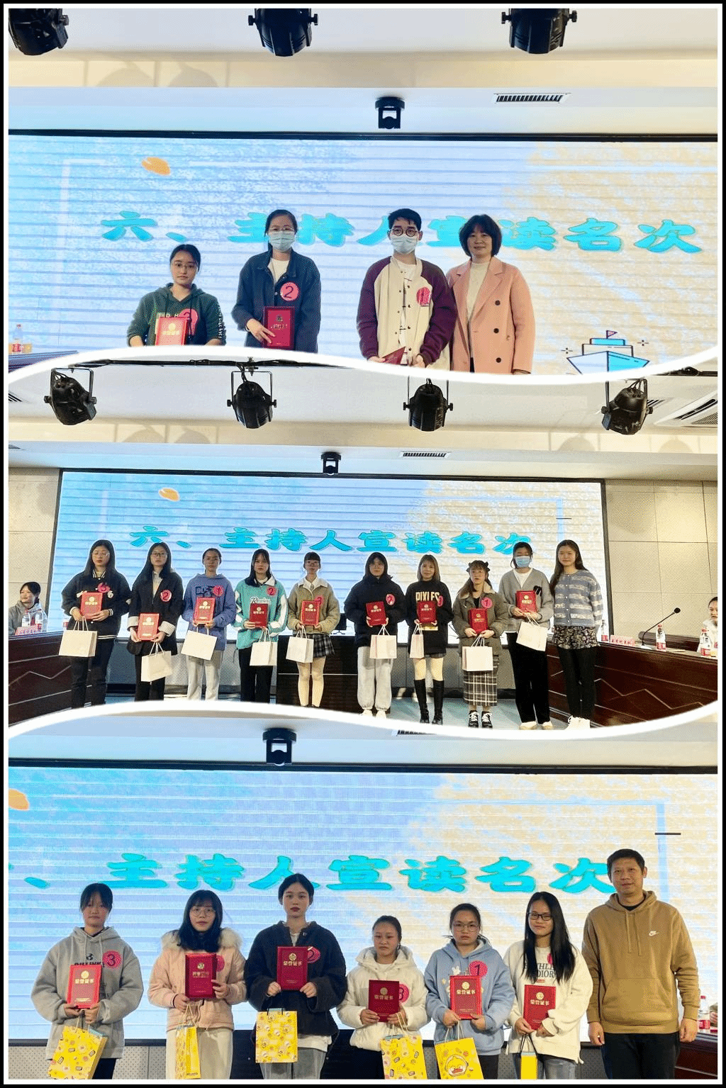 经过激烈的比拼,本次决赛最终评出了一等奖1组、二等奖2组、三等奖3组,并由现场嘉宾老师为其发奖品并合影留念。