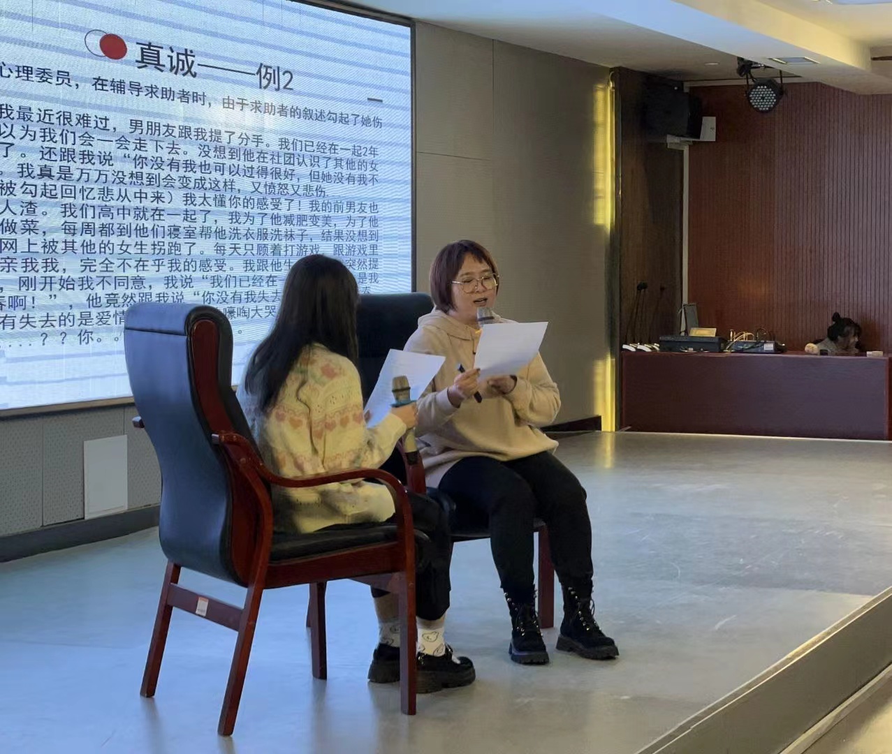 讲座现场通过有趣的案例进行角色扮演,调动同学们的积极性,让同学们更深刻地了解朋辈辅导的基本技能。通过此次培训,能让更多的人收获到朋辈辅导基本技能。让心理委员们明确自身职责,增强心理委员们的责任意识,营造积极向上、互帮互助的校园氛围。