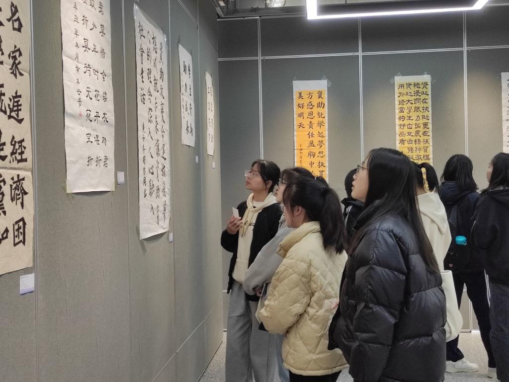 本次书法作品主要围绕学生资助政策的设立、发展和运行,抒发对党和政府情系民生、心系学生的感恩之情,资助项目暖心以及大学生立志成才、知恩感恩等内容进行软笔书法的创作。活动前期通过线上与线下的广泛宣传,各二级学院积极参与,软笔书法共计收集到797幅作品。经评审,最终评选出一等奖1名,二等奖3名,三等奖6名,优秀奖10名,入围参展奖15名。这些获奖作品与第一届和第二届的部分获奖作品在教育与音乐学院一楼艺术创意展示中心中展出。展出作品得到了老师与同学的一致好评。