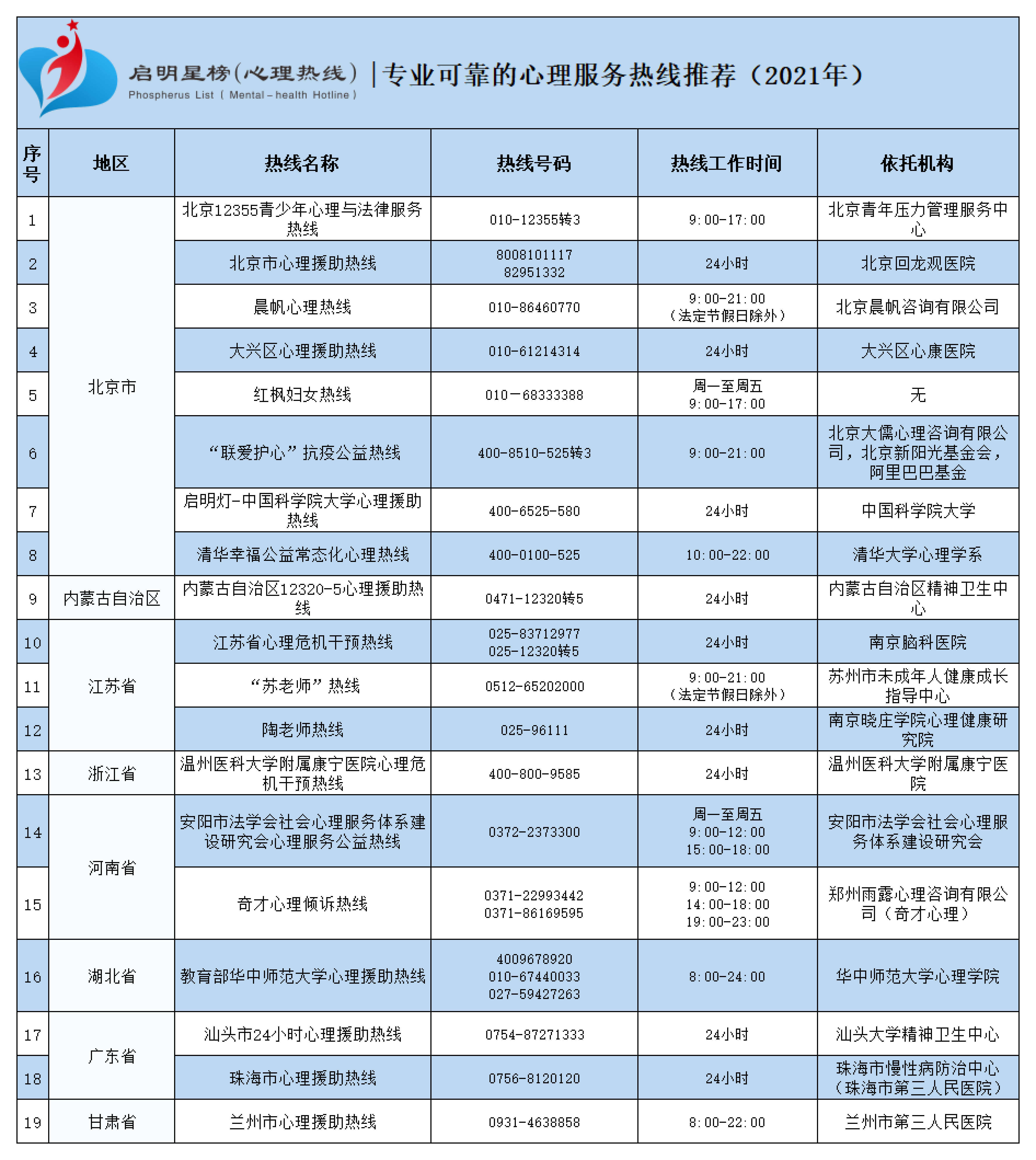 看完这些小视频,如果同学们经过学习和自我调节仍然感到有困惑的,也不用太着急,欢迎联系大学生心理健康教育与咨询中心寻求专业的帮助,任何的困难我们可以一起探讨,陪伴你度过艰难的时刻。同时也给同学们提供了专业可靠的心理服务热线(详情见附件),拓宽同学们心理求助的渠道。
