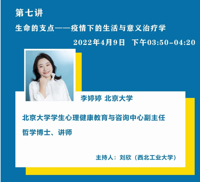 宇宙万象是动态的,同一事物的过去现在未来,都在时时变化。在疫情燃烧的今天,彰显活在当下的关键哲思。因此,同学们在面对疫情所带来的不断地突如其来的变化,我们该如何应对?面对封校可能会产生的枯燥感、无意义感,我们如何面对内心感受到的情绪,去发现生活所存在的意义?让我们一起探索生命的支点,在不断变化的环境当中找到属于自己的平衡点。