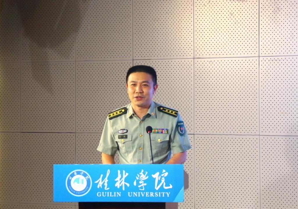 图:桂林市雁山区人民武装部上校政委苏瑜作动员宣讲