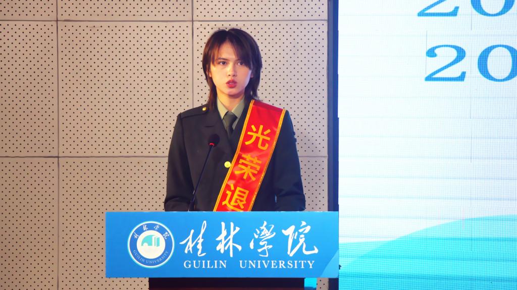 会议首先由2021年退役复学学生代表,理工学院数据科学与大数据技术专业陆洪燕同学分享了自己的军旅生涯,并表示在回到母校后,将更加坚定自己的理想信念,努力刻苦奋勇拼搏,立志退伍不褪色。随后参会领导为2021年退役复学学生代表赠送慰问礼品。