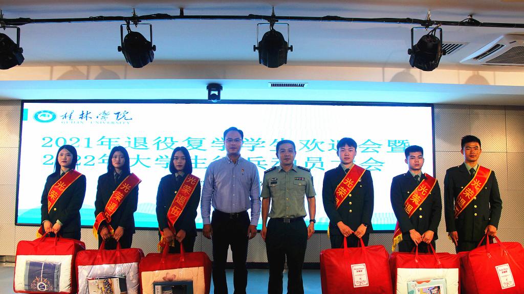 为进一步加强学生爱国主义教育、国防教育与2022年大学生征兵工作,5月19日上午,我校在至善讲堂召开2021年退役复学学生欢迎会暨2022年大学生征兵工作动员会。会议特邀桂林市雁山区人民武装部上校政委苏瑜作动员宣讲。校纪委负责人、副校长邓志平,各二级学院分管学生工作副书记,2021年退役复学学生,2022届毕业生代表,学生事务部相关人员参加会议。会议由学生事务部副部长、校团委书记王瑞主持。